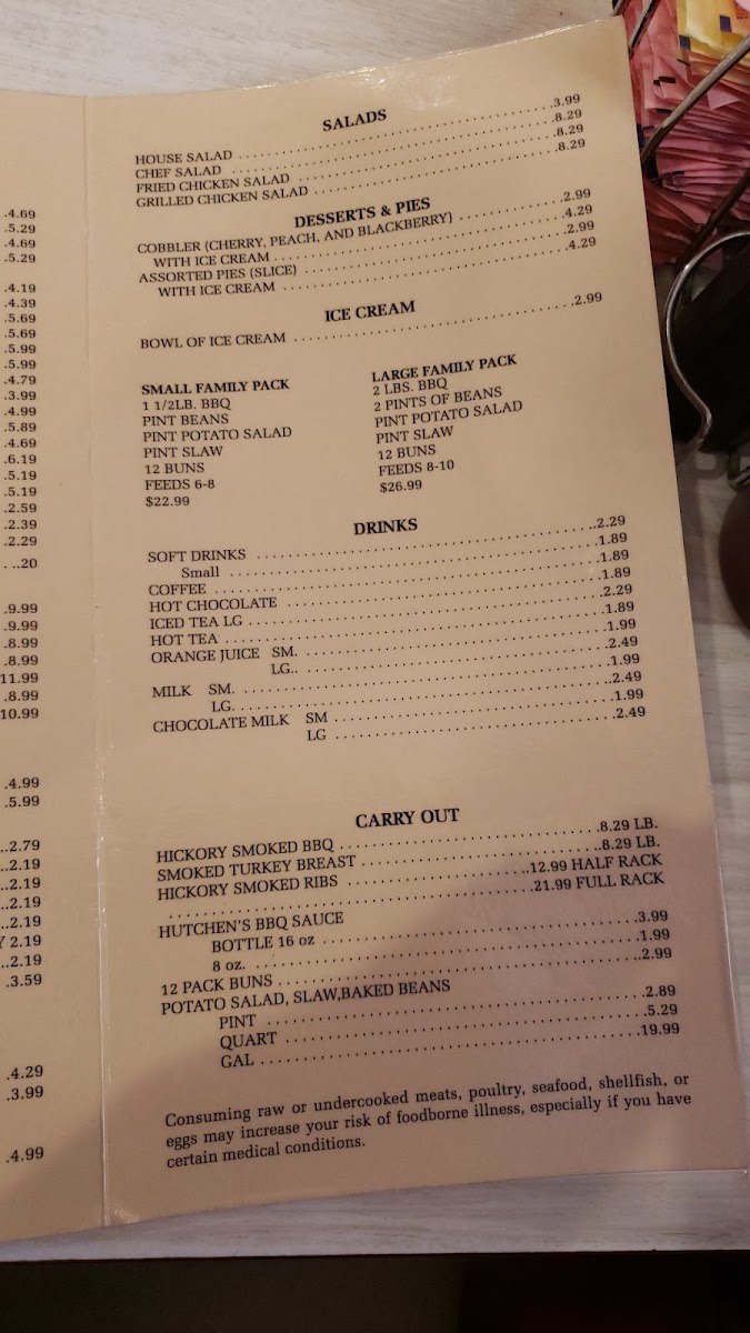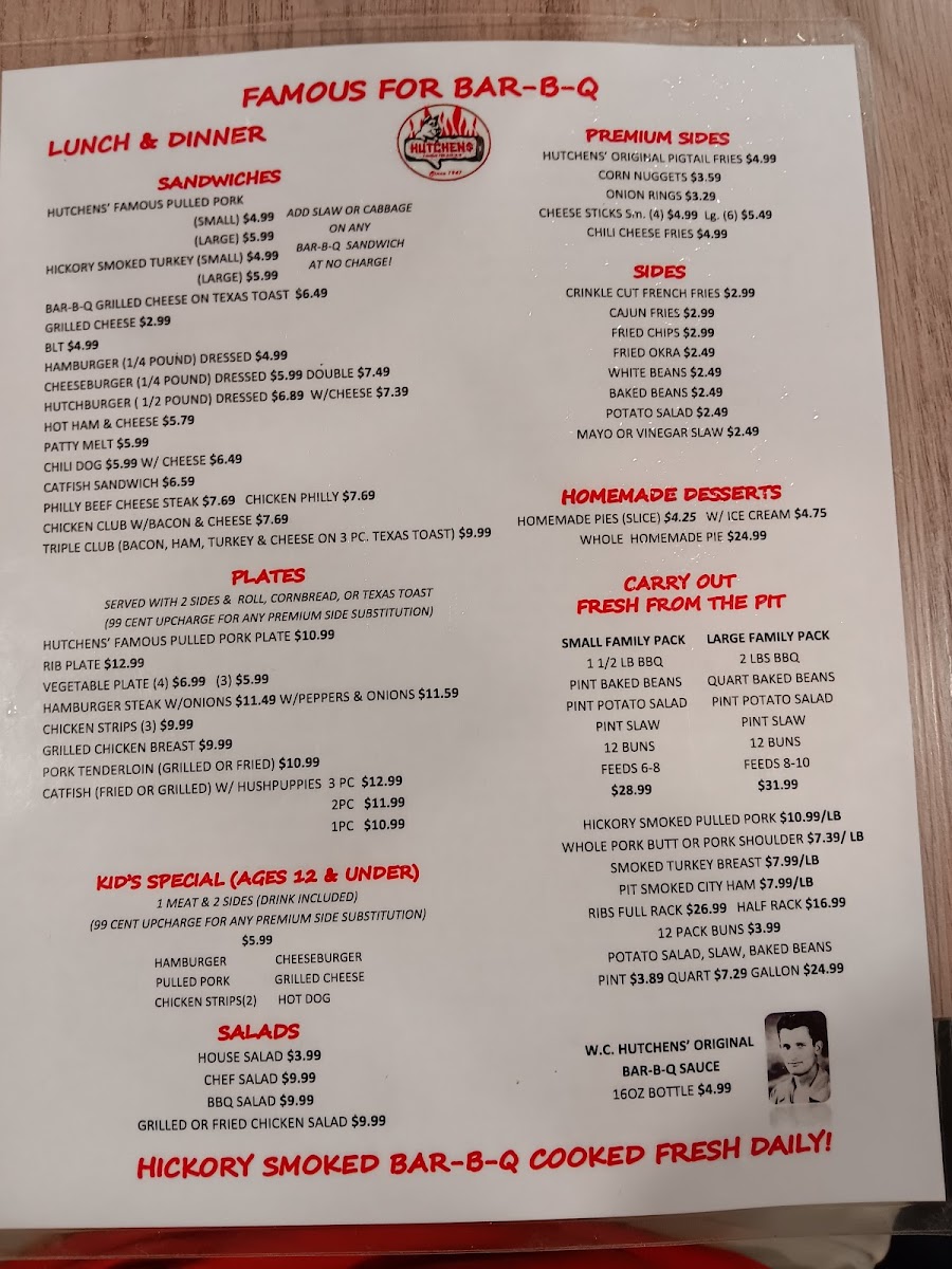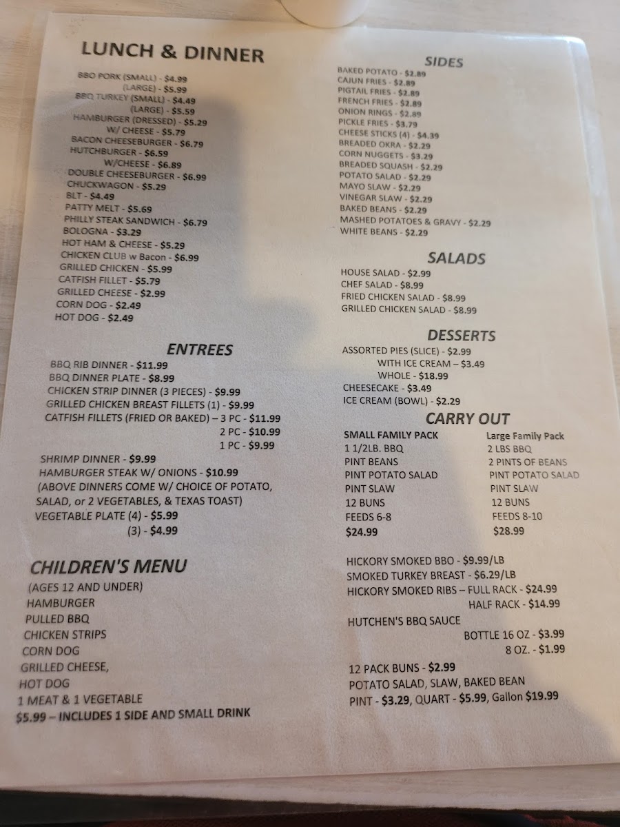 Hutchens Barbeque of Benton Menu